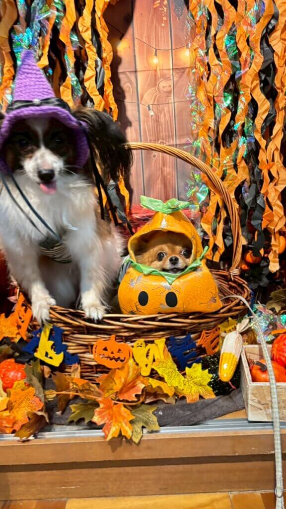 食べ終わったころ受付付近でハロウィンのフォトスポットがあり写真を撮ることに、