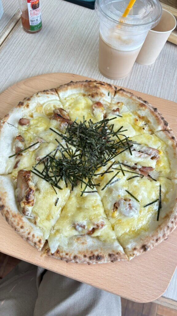 自分が食べたのはマルゲリータピザです。嫁さんは何かのドリアを注文しました。ピザはモチモチでしたよ。