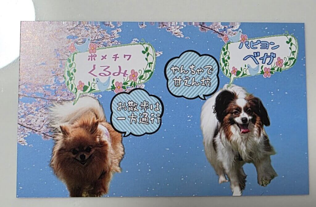 前回作ってもらったワンコ名刺が残り少なくなってきたので、新しく作ることにしました。今回は自分で作ってみようと思います。